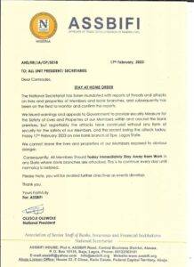 “We issued warnings and appeals to Government to provide security Measures for the Safety of Lives and Properties of our Members within and around the bank premises, but regrettably the attacks have continued without any form of security for the safety of our Members, and the recent being the attack today. Friday 17th February 2023 on one bank branch at Epe, Lagos State.