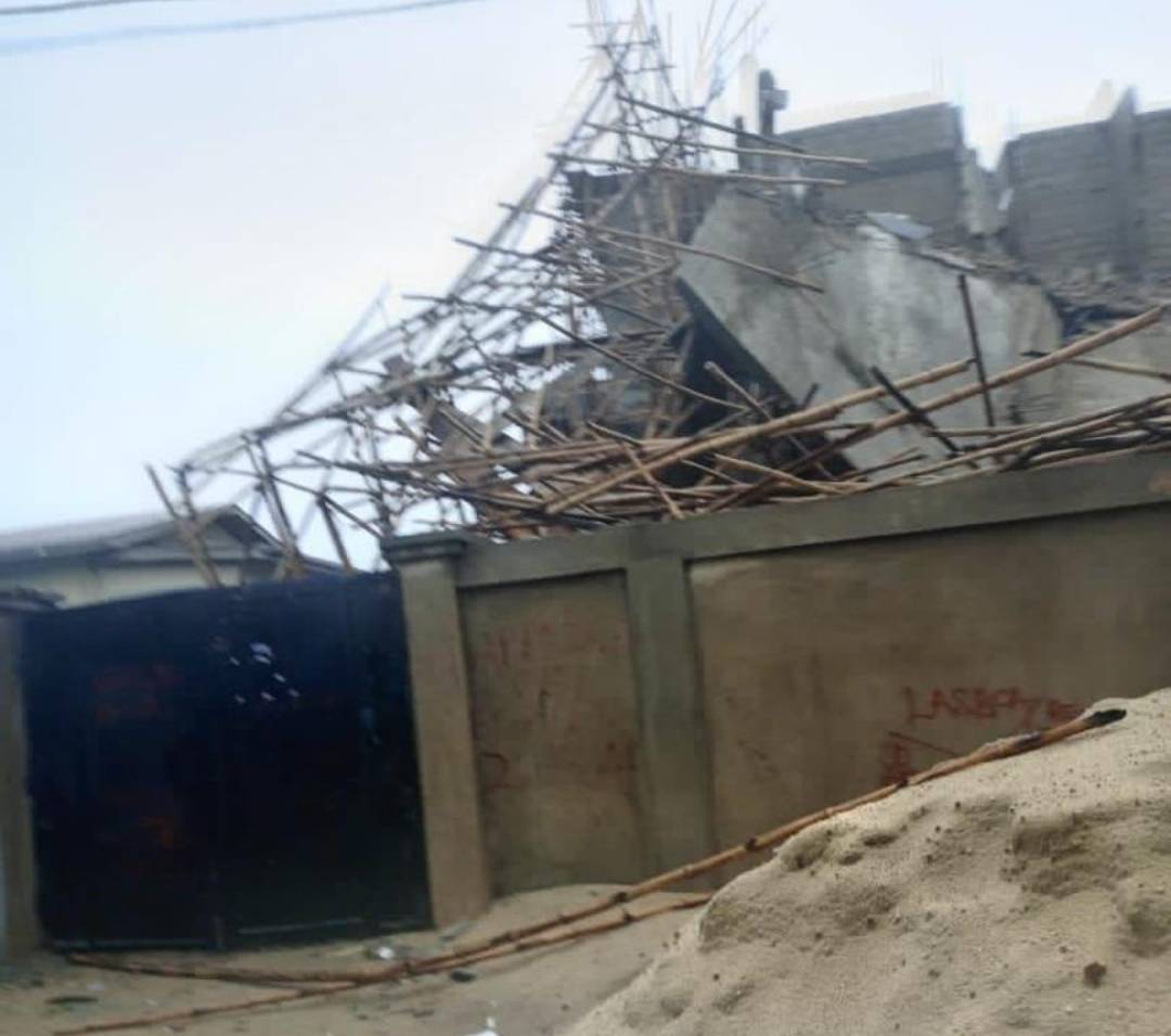 A three-storey building under construction on Ladipo Oluwole Street, GRA, Apapa area of Lagos state has been reduced to rubble due to thunderstorm.
