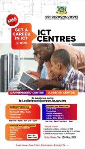 Interested individuals have been advised to visit https://www.ict.odiolowoojuwoye.lg.gov.ng to enroll for the free training which will take place at the council’s Danmengoro and Ajisegiri ICT Centres.