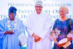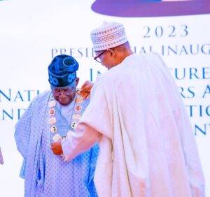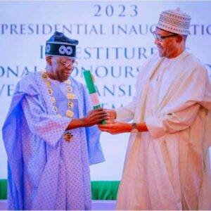 The outgoing President Buhari also transferred the mantle of service alongside the documents at the investiture of the National Honour of Grand Commander of the Federal Republic on Tinubu and Grand Commander of the Order of the Niger on Vice President-elect Kashim Shettima at the State House Banquet Hall, Abuja.