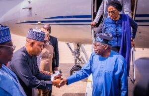 In a video sighted by Theliberationnews, Tinubu was welcomed back to the country today by the president of the senate, Ahmad Lawan.