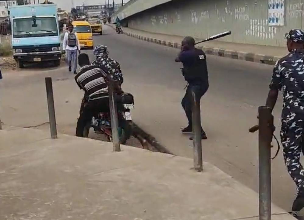 The bad eggs in the Nigerian Police Force (NPF) were seen at their best again, this time around at Abule Egba Overhead bridge area of Lagos State as they forcefully confiscated a motorcycle and cruelly brutalized the bike man.