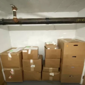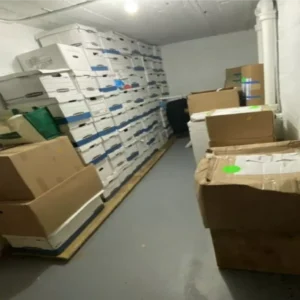 At one point, the storage room was filled with more than 80 boxes, as seen in the two photographs below.