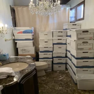 A photo allegedly shows boxes of classified documents in a bathroom.