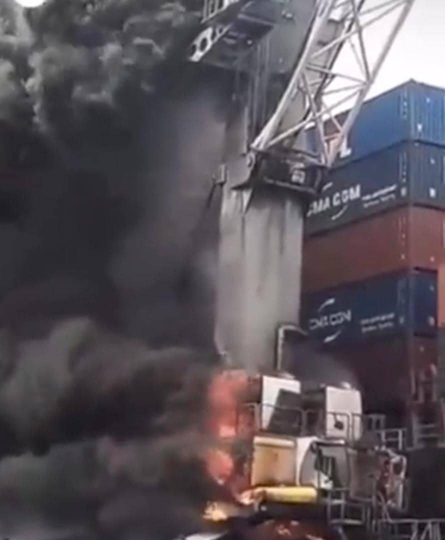 In a video obtained by Theliberationnews, it was seen that efforts were being made to put out the fire as it wrecks havoc on the stack of containers and heavy-duty equipment in the port.