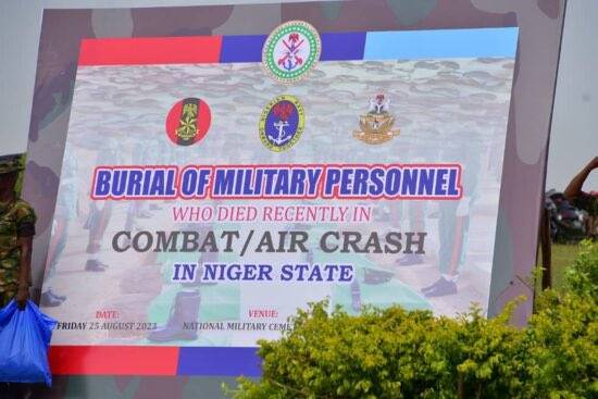 The remains of the military personnel who died during an ambush and air crash in Niger state are currently being laid to rest by the Nigerian military.