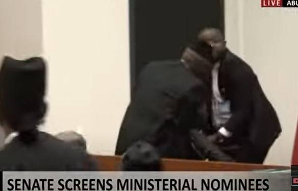 The incident happened just after the nominee had finished reciting his profile and just when one of the senators from his local Kaduna State was about to ask him the first question.