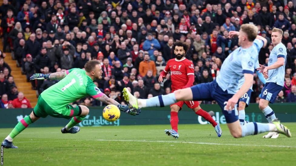 Salah opened the scoring just before the break, latching onto a pass from Darwin Nunez before placing a finish beyond Mark Flekken.
