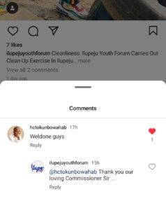 Reacting to a post about the project on IYF’s Instagram page, custodian of the state’s environmental well-being Tokunbo Wahab, who has been taking bold steps to tackle environmental issues in the state thumbed the youths up for their efforts.