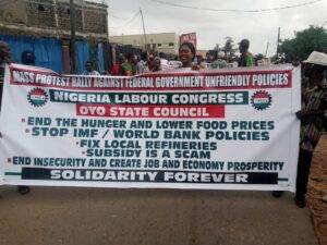 Members of the NLC in Oyo state in compliance to the directive started the protest from their Agodi secretariat, marching towards Mokola roundabout, expressing their grievances with chants like “Ebi npa wa o,” translating to “we are hungry.”