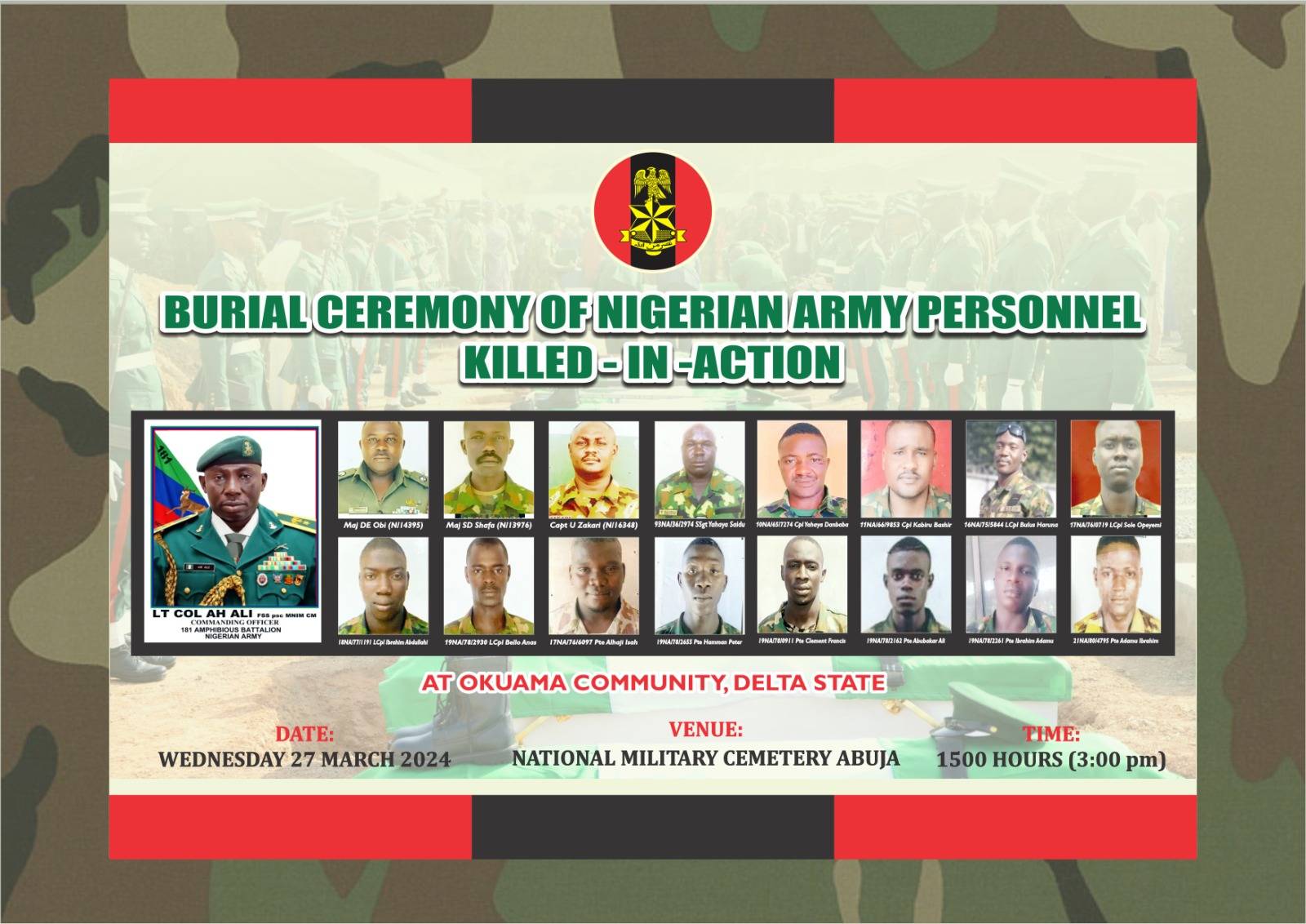 President Bola Tinubu has conferred posthumous national honours on the 17 soldiers gruesomely killed in the Okuama community, Bomadi LGA of Delta state.