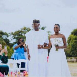 Fashola performed the fatherly role as Yewande’s father, Mr Mojibola Oladisun Fashola, is late and as the ‘Olori Ebi’, the former Lagos state governor and immediate past Minister of Works had to represent the family.