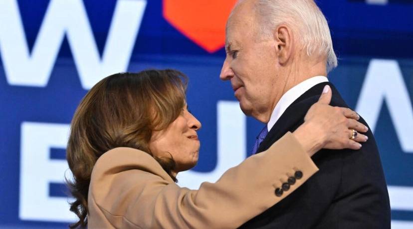 Harris joined him on stage after the speech and the pair embraced, as the crowd gave Biden a rapturous reception following his stunning decision less than a month ago to drop out of the 2024 White House race.