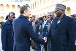 French President Emmanuel Macron greeted his counterpart at the historic Invalides memorial complex, with the first official state visit by a Nigerian leader in more than two decades.