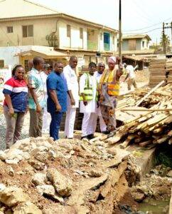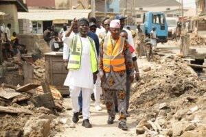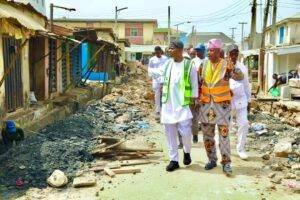 Accompanied by key officials including the SLG, Hon. Olaide John Bello with Hon. Olumide Akinade, Hon. Lekan Peters and Supervisor For WAPA, Hon. Folake Adams, the Chairman visited the ongoing reconstruction of Gboyega Kilo and Obokun Streets with Yakoyo Market which are constituency projects of the lawmaker representing Ikeja Constituency in the House of Representatives and Chairman House Committee on Finance, Hon. James Abiodun Faleke.