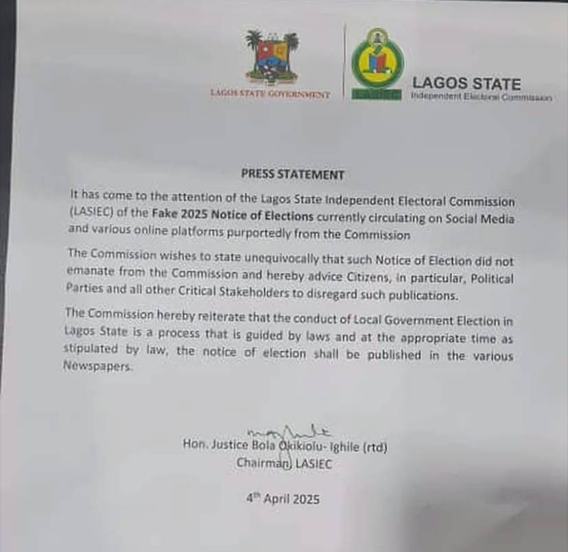 LASIEC said that the notice for the council election currently in circulation did not emanate from the Commission, urging political parties and other stakeholders to disregard the documents.