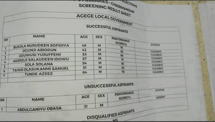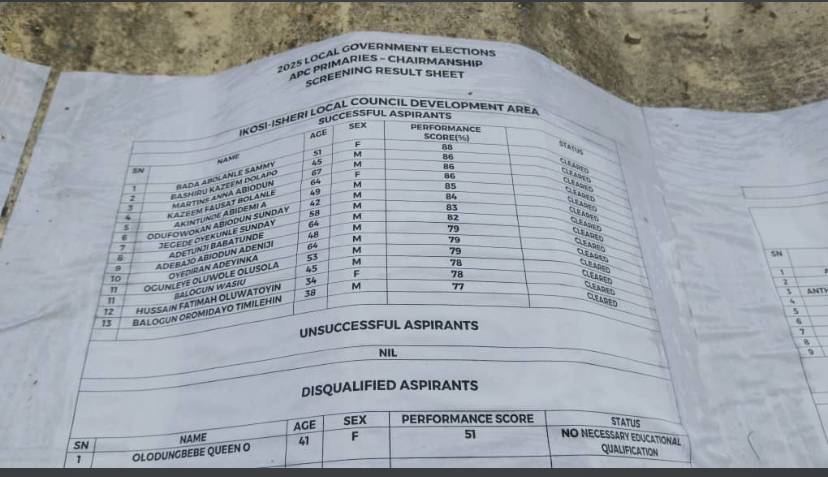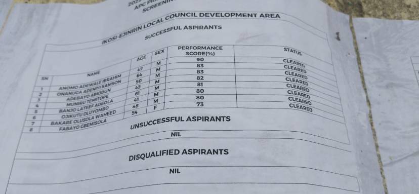 Theliberationnews gathered that their disqualifications were primarily due to lack of Permanent Voter Cards (PVCs), missing APC membership cards, and falsified secondary school certificates.