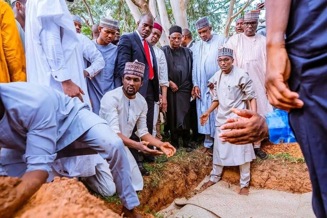 Vice President Shettima, who sat at the graveside to supervise the burial, along with notable other politicians, wore a sombre look throughout the duration of the funeral rituals.