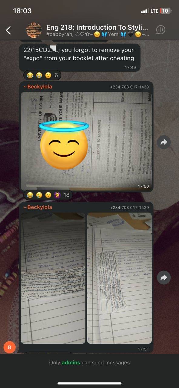 A 200-level student of the University of Ilorin (UNILORIN) will reportedly be facing disciplinary panel soon after allegedly leaving a piece of cheating material commonly referred to as “expo” inside his answer booklet during an examination.