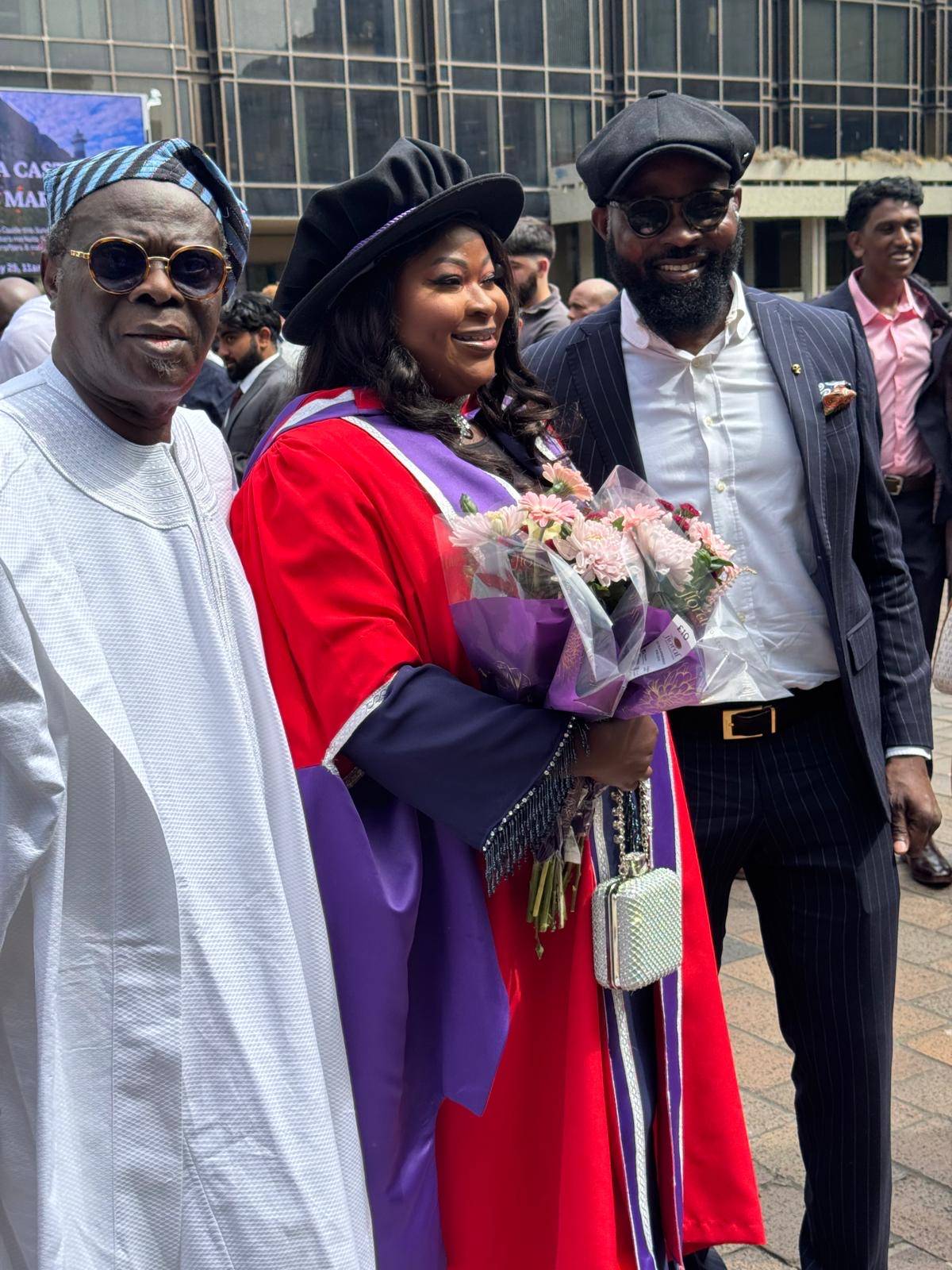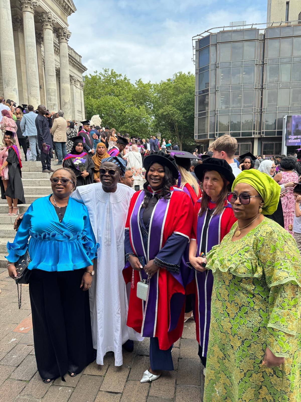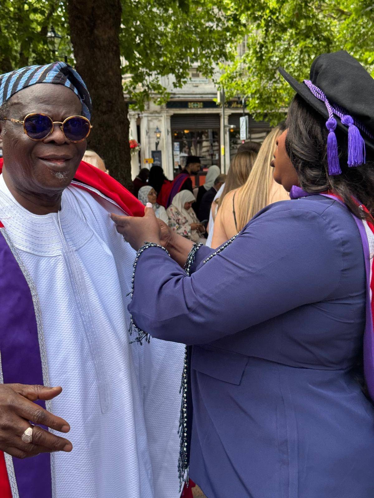 Towering leader of the ruling All Progressives Congress (APC) in Lagos State, Cardinal (Dr.) James Omolaja Odunmbaku, better known as Baba Eto, was all joyous as one of his daughters, Rachael Odunmbaku bags doctorate in Clinical Urology from University of Portsmouth, United Kingdom.