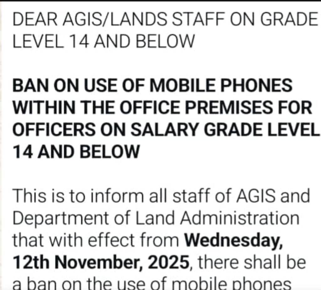 It reportedly targeted all officers on Salary Grade Levels 14 and below, forbidding them from entering office premises with their mobile phones beginning from Wednesday, November 12, 2025.